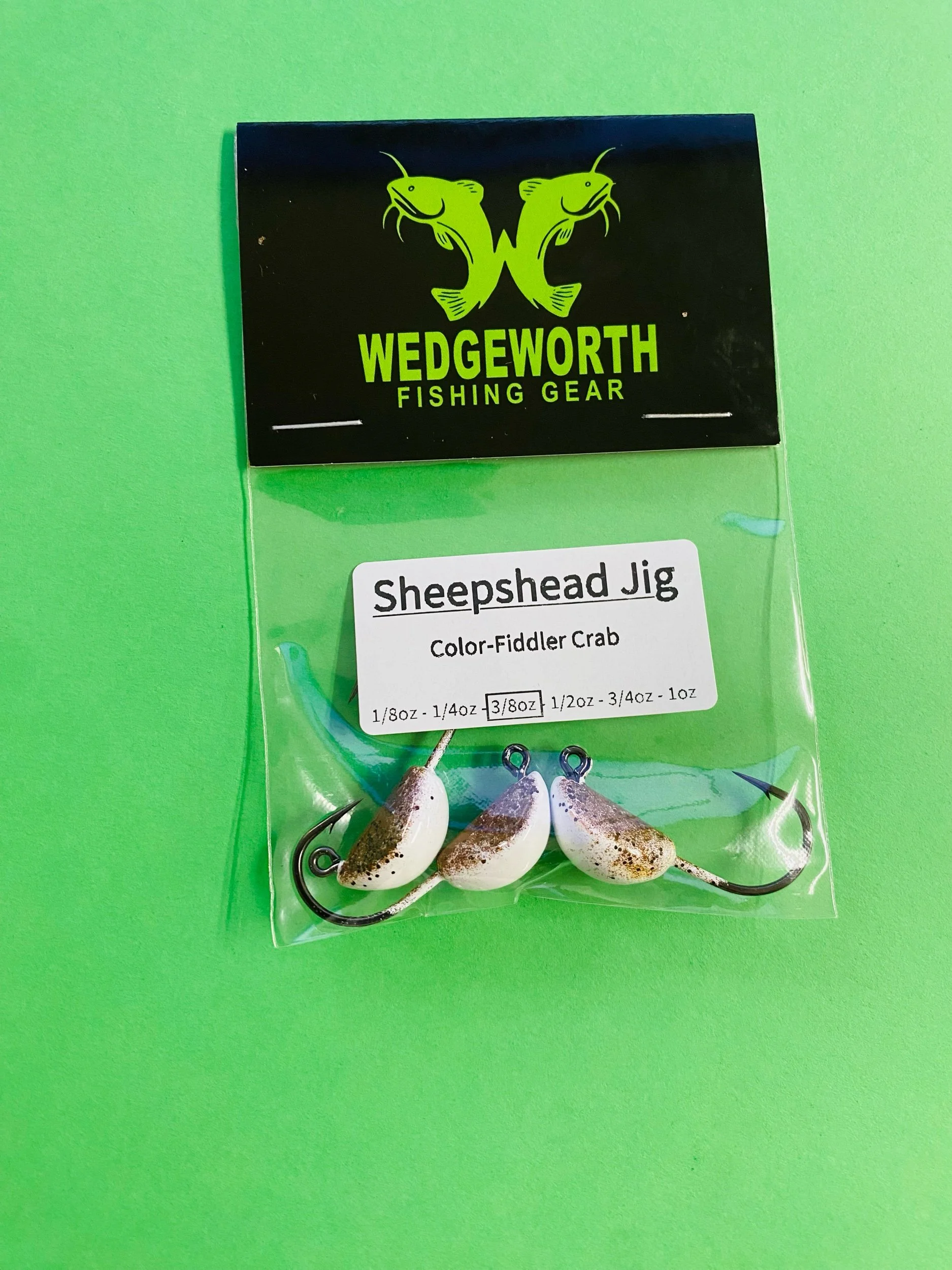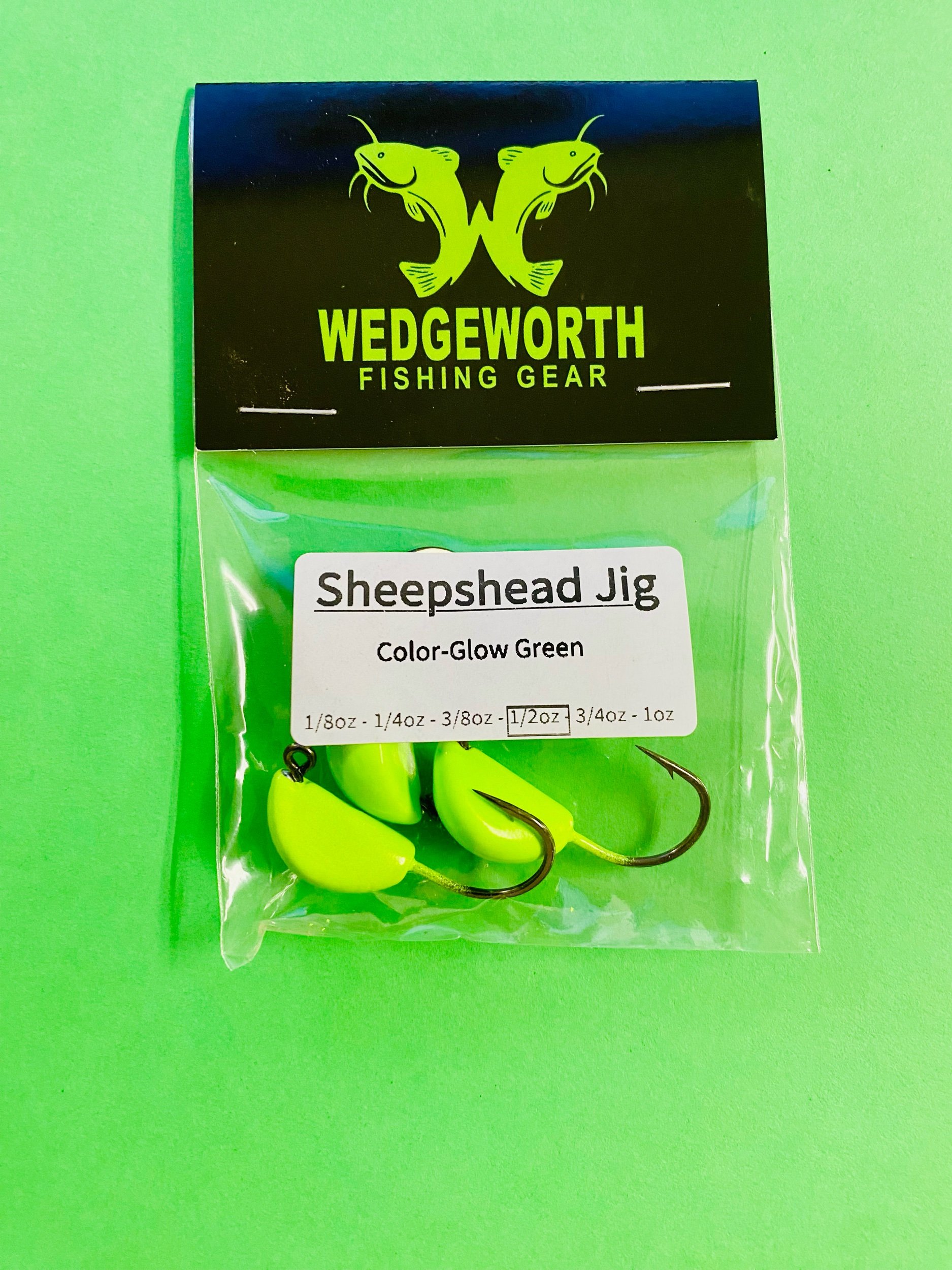 All our jig heads are made in house by us. The color coating is baked to 350+ degrees to make a hard durable coating that last. If you don’t see the color your looking for message or call us and we will custom make it for you. All sheepshead jigs come in a 3-pack.